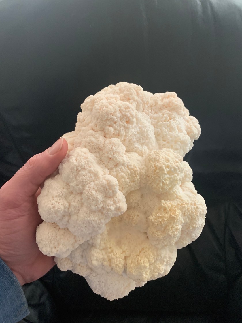 Lions mane mushroom tastes a bit like a scallop if I had to compare it to something. It doesn’t have any ocean flavor to it, and will take on the flavor of whatever you cook it with. Here’s a recipe to get you started cooking with Lion’s mane.